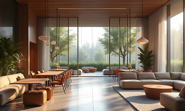 Health & Wellness: Yoga pavilion, gym, and meditation deck for fitness.